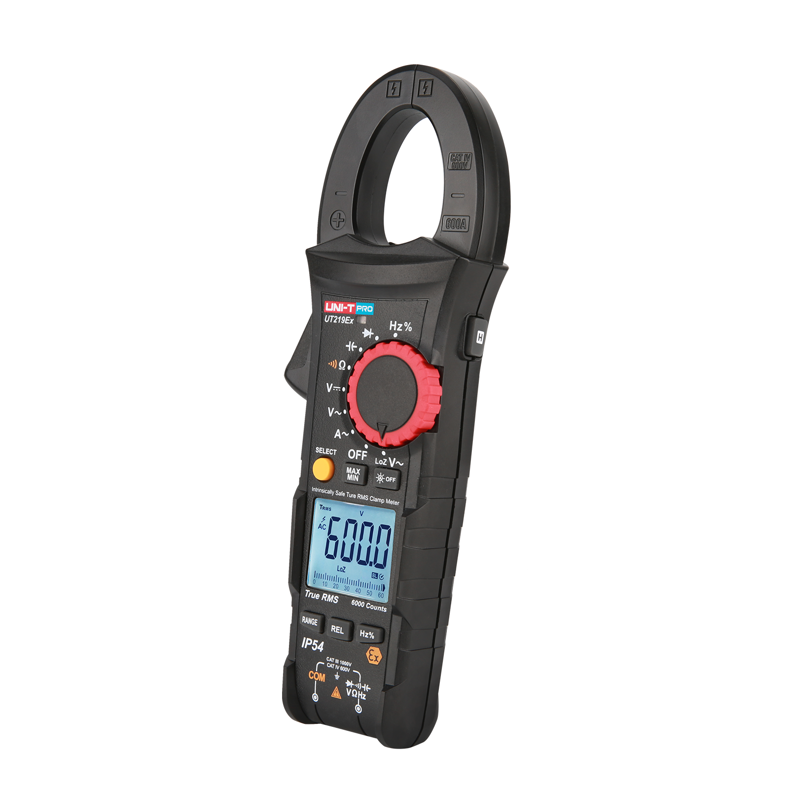 UT219Ex本安型工业防爆钳形表是一款可用于IIC(气体) 0区、1区和2区以及IIIC(粉尘) 20区、21区和22区的本质安全型手持式工业数字钳形表。它不仅具备传统钳形表测量交直流电压、交流电流、电阻、二极管、电路通断、电容、频率、占空比等功能,同时还具备防水、防尘、耐摔等特点,它符合CAT III 1000V/CAT IV600V安全等级,并获得了国家Ex ia IIC T4 Ga等防爆认证, 广泛用于石油环境、化工环境、制药环境等强电场环境中检测、维护和维修 电路电力设备,对测试数据进行分析排除线路故障功能。