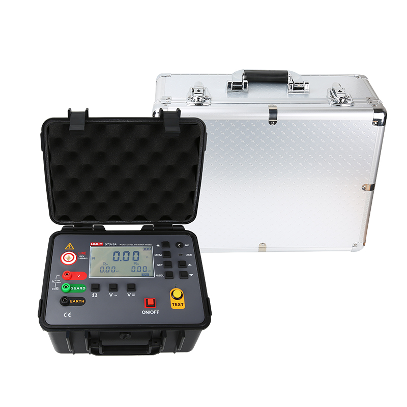 UT515A兆欧表绝缘电阻测试仪,又名兆欧表,用于绝缘电阻的测试。UT515A具有LCD大屏背光显示、数据存储、数据查阅、报警、自动关机等功能。同时还具备测量交直流电压吸收比和极化指数功能。整机量程广、分辨率高、操作简便、携带方便,准确、可靠、性能稳定,抗干扰能力强。而且具有防震、防尘、防潮结构,是电信、电力、气象、机房、油田、机电安装和维修以及利用电力作为工业动力或能源的工业企业部门必不可少的测量仪表。坚固可靠易用,使用户的工作事半功倍。