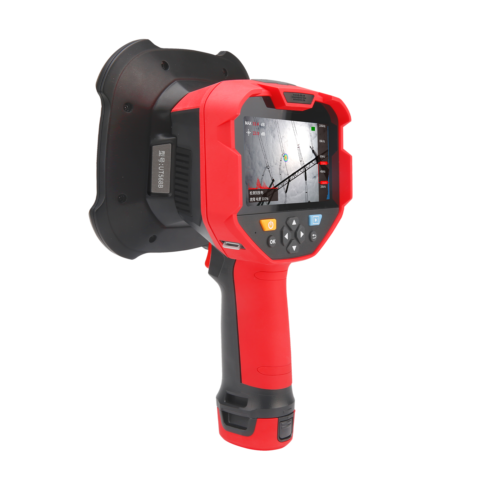 UT568B 超声波成像仪,利用麦克风阵列技术波束形成技术获取声源分布数据,并配合高清摄像头实时采集视频画面,通过将声源分布数据同视频图像进行声像融合,把变化的声源动态的呈现在显示屏上。便携轻巧,操作简单,能够快速上手作业,仅需要调节测试频率范围、测试动态范围等参数即可满足绝大多数测试需求;支持拍照、视频模式;支持扩展大容量数据存储卡,测试数据快速导出及分析。