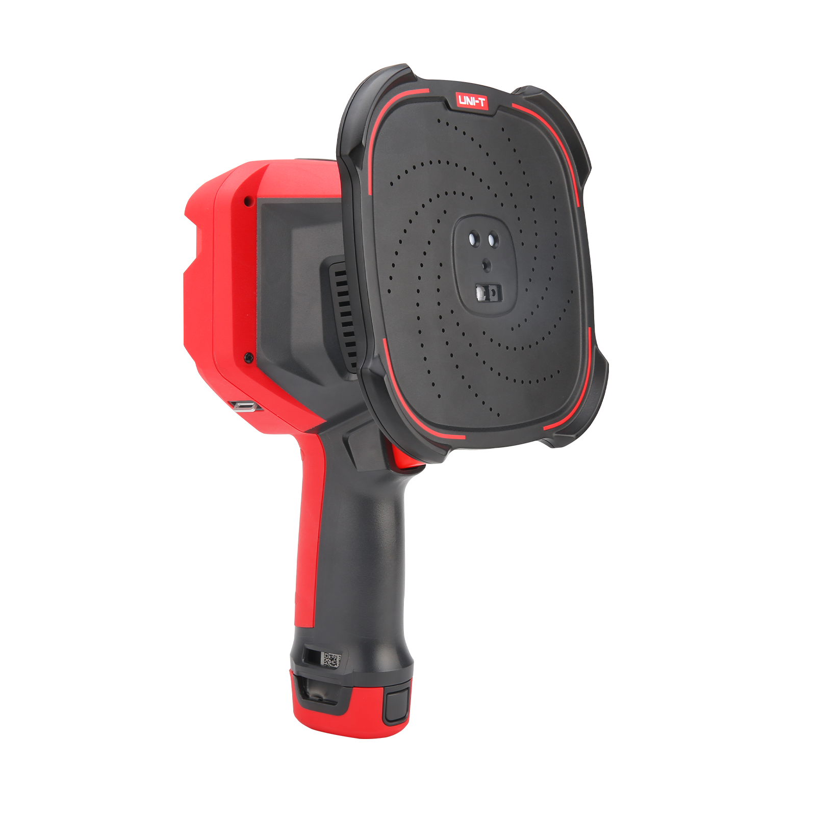 UT568B 超声波成像仪,利用麦克风阵列技术波束形成技术获取声源分布数据,并配合高清摄像头实时采集视频画面,通过将声源分布数据同视频图像进行声像融合,把变化的声源动态的呈现在显示屏上。便携轻巧,操作简单,能够快速上手作业,仅需要调节测试频率范围、测试动态范围等参数即可满足绝大多数测试需求;支持拍照、视频模式;支持扩展大容量数据存储卡,测试数据快速导出及分析。